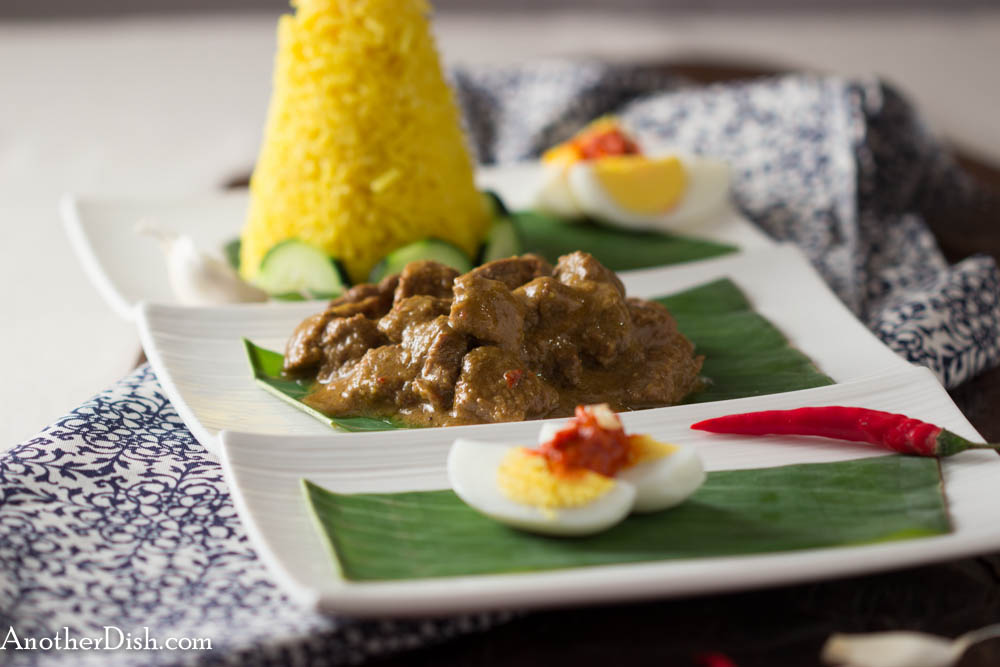 Here’s another one of my favorite Indonesian pork recipes (I have several favorites in this category!). This one is a roasted pork tenderloin that has been marinated in a ginger/garlic/sweet soy sauce. It is served over a bed of crisp, shredded white cabbage, with a drizzle of a unique (delicious!) ginger sauce. I hope you’ll try it!