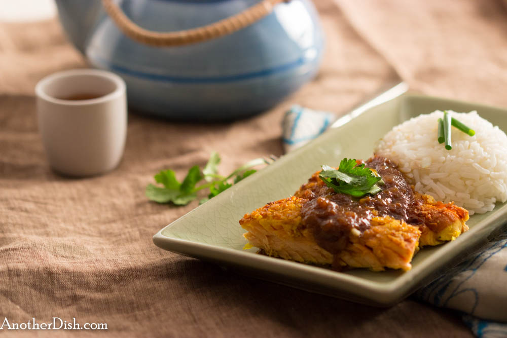 I don’t know how much salmon they eat (if any) in Southeast Asia, but Southeast Asian flavors sure go well with it! This is one of my favorite ways to make salmon, which I always have on-hand in the freezer (I like to buy the frozen, center-cut salmon filets, but it’s always a treat to prepare it fresh!). The salmon is coated in a wonderful coconut/panko/spice mixture, then pan seared. I especially like the sweetness of the sauce with this recipe, and the sour of the tamarind adds a nice balance.