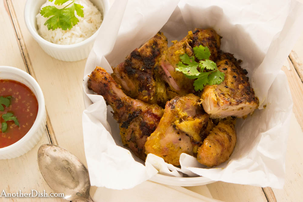 Combine chicken pieces and paste in a large bowl. Mix well and marinate in the refrigerator for at least 2 hours. Be sure to stir chicken mixture occasionally.